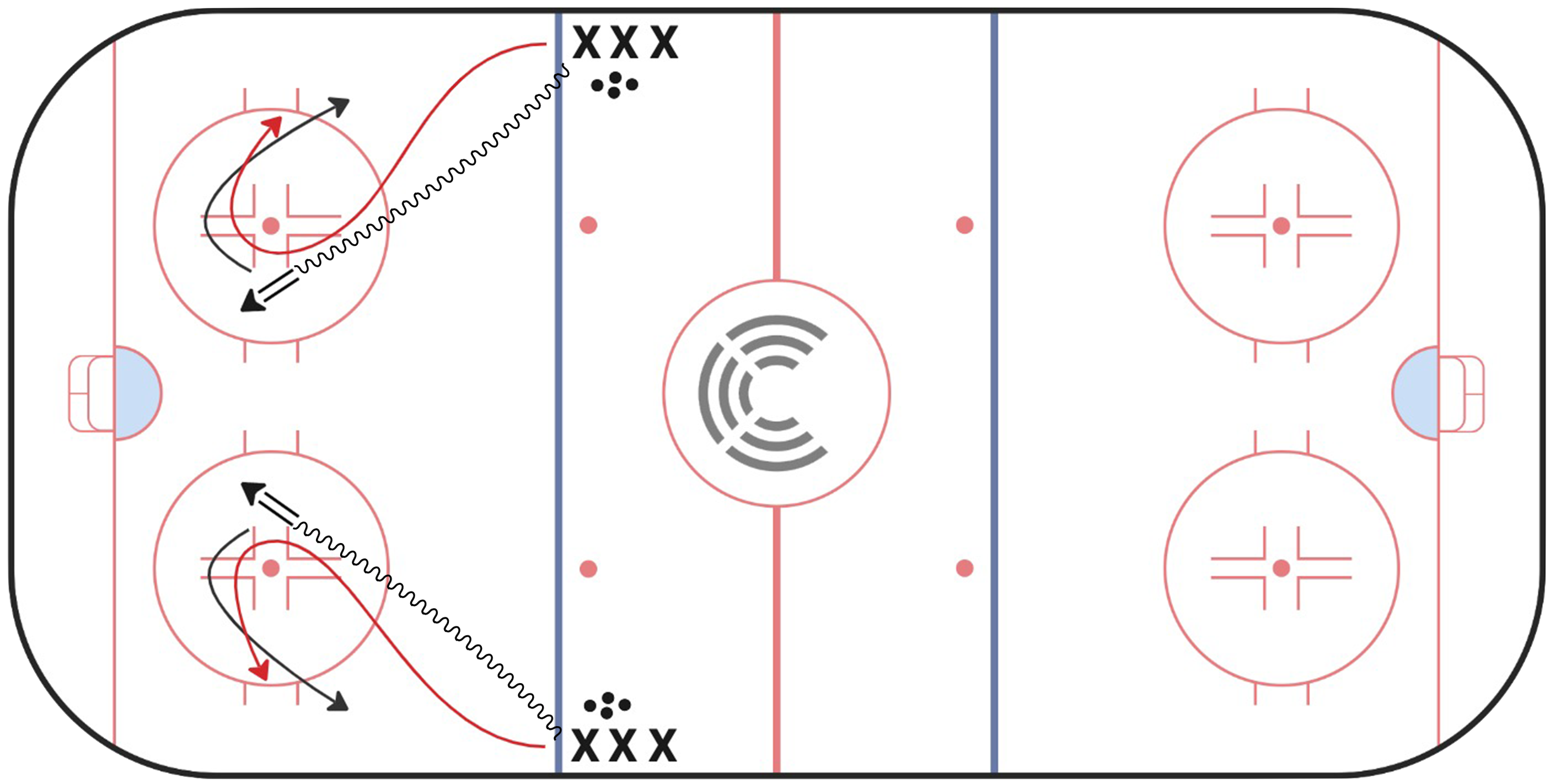 - Get into a wide glide with puck loaded in shooting position.