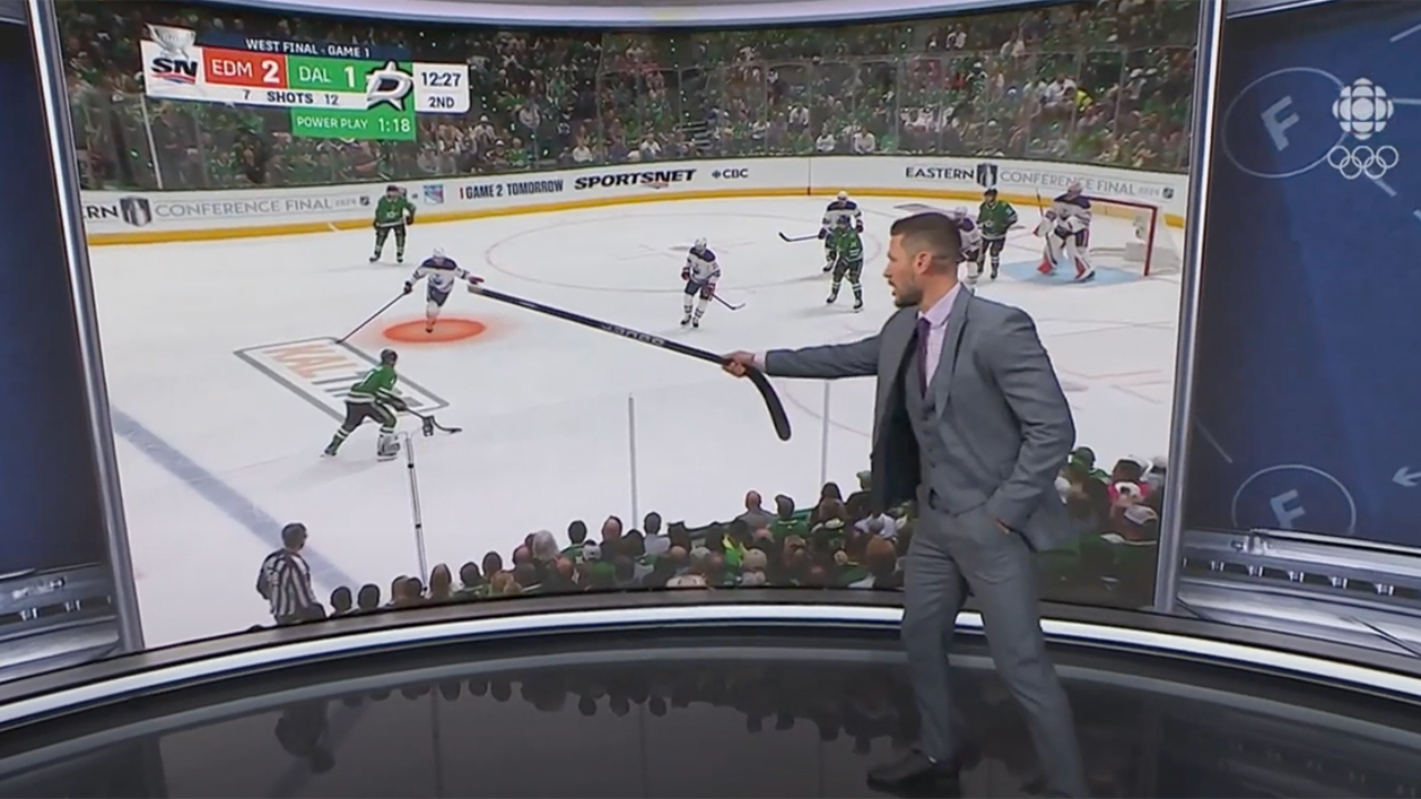 Kevin Bieksa from Sportsnet and Coach and former Winnipeg Jets coach Rick Bowness explain the “trap down” the Oilers use.