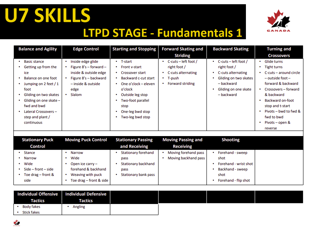 So how do we test the players properly? At U7 - U9 levels, the basic foundation of hockey's core skills are all that matters. We want kids to be placed with kids of similar ability. Similar speed, similar passing skills, similar shooting skills (although there's always one kid who has an absolute cannon). The coaches are going to teach fundamentals at this level, so we want kids with a unified set of fundamentals to be placed together and developed at the same pace.