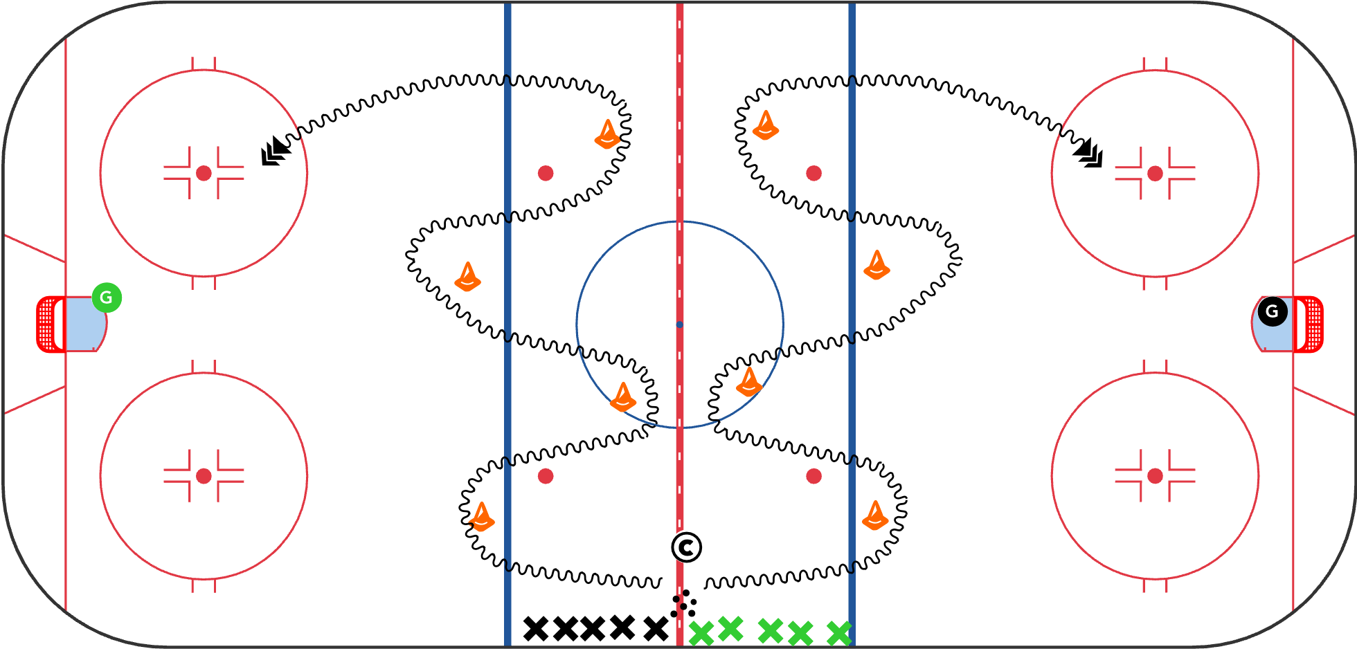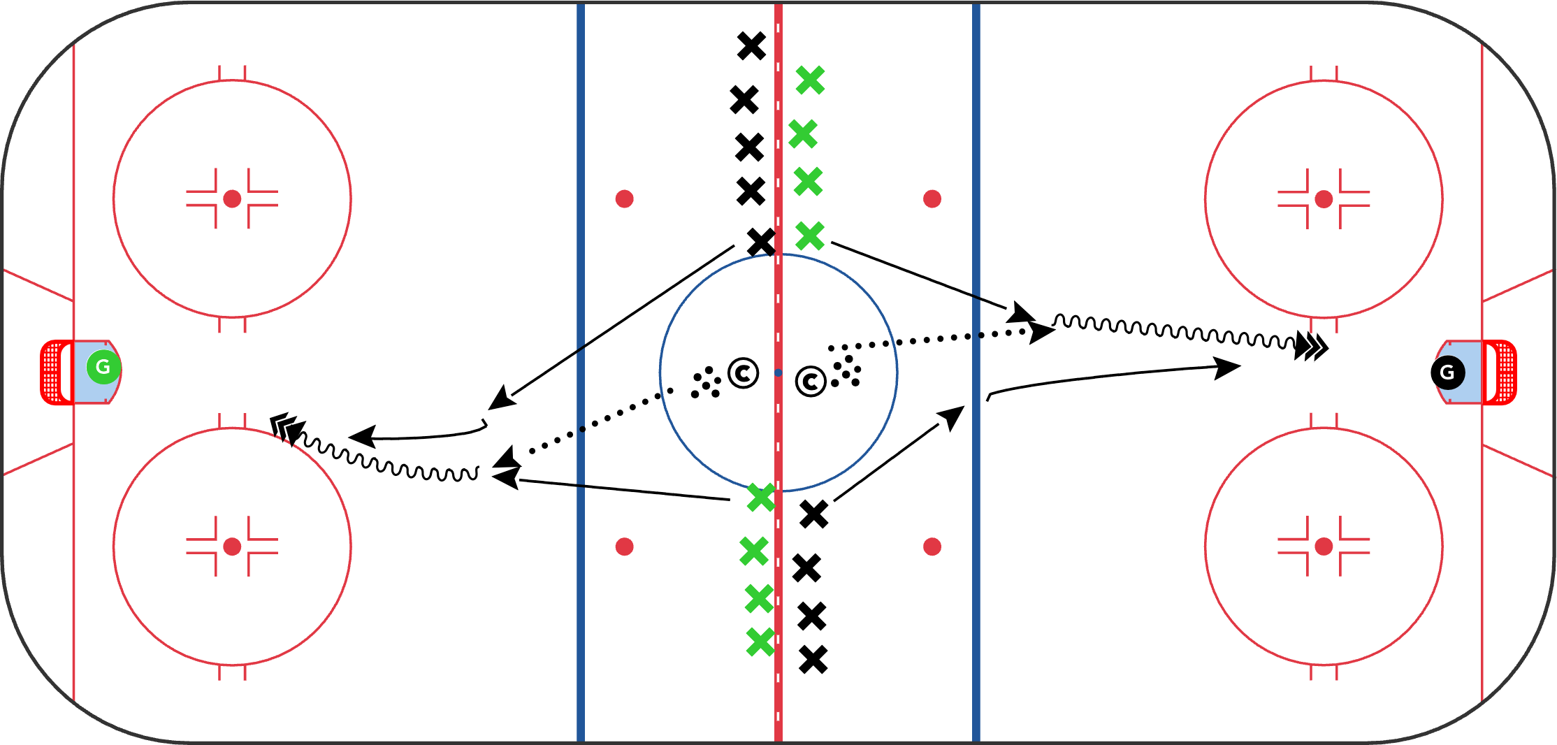 Drill 3: 2on0 Pass & Shot (Skating, Passing, Shooting 10mins)
