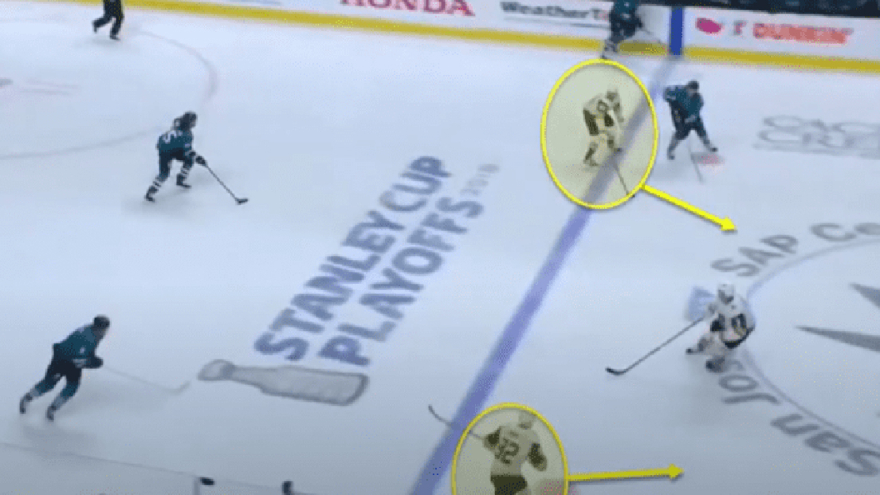 Most teams will post their F1 on the same side as their F2. They force the opponent to go to the d-man’s side. Sometimes the F2 can skate forwards instead, making it harder to beat them with speed. In the last part of the video, if the opponent doesn’t have a D who can carry the puck and be a playmaker, send your F1 behind and shut down the drop pass (Tampa Bay Lightning example).