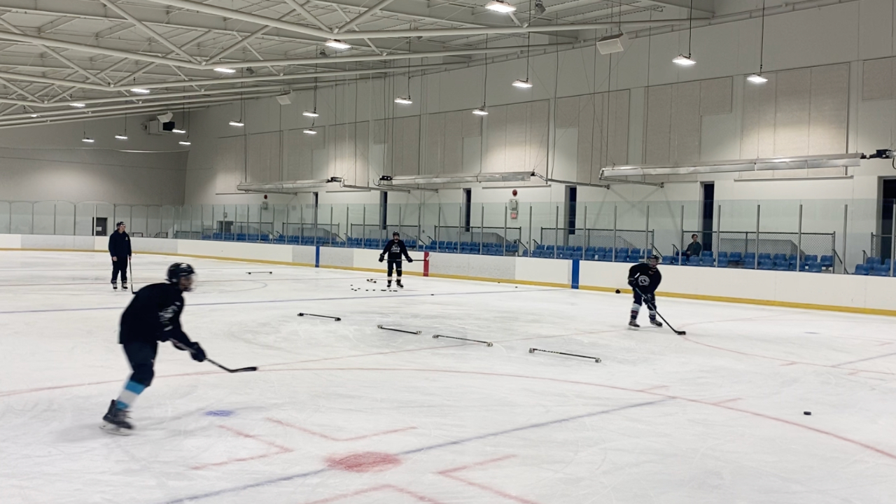 - Player with the puck can either make a pass through the dividers or take a shot on net. Once shot is taken and the rebound is played out, next group will start.