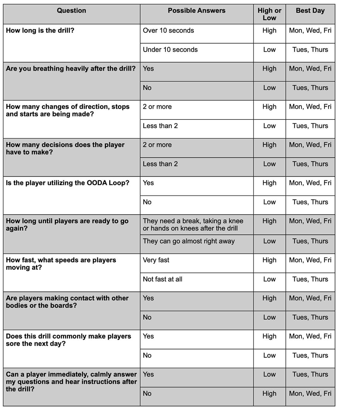 Tuesday and Thursday, low intensity days, will be the most challenging and overlooked for players and coaches. Low intensity?! Not on my team!