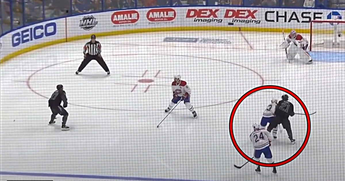 Generally, most coaches say a back checking forward should leave the puck carrier to the strong side defensemen or the defence pair if they’re unable to force a puck turnover by the time the puck carrier gets to the red line. At that point, back checkers are tasked with the role of picking up opponent’s without the puck in man coverage all the way to their own net.