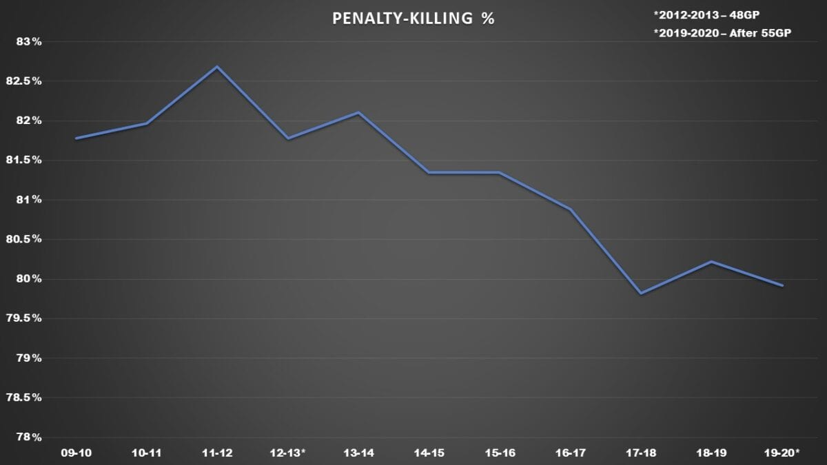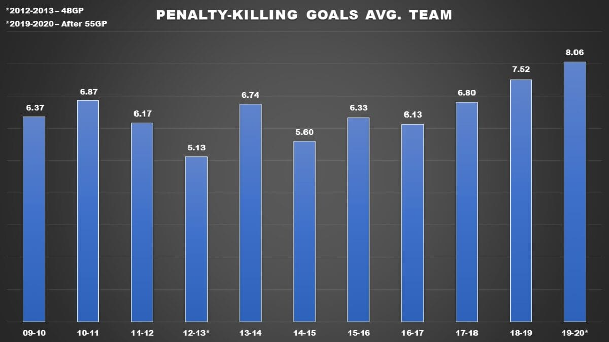 In the last three years, NHL power plays have operated at close to 20% efficiency, up from the previous eight years. Meanwhile, shorthanded goals are on the rise, with teams scoring an average of 8.06 when down a man after 55 games.