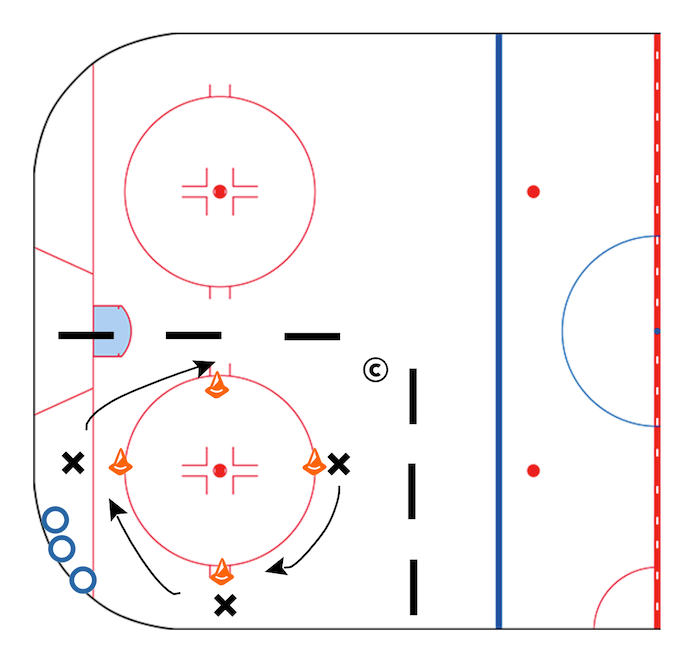Car Race Crossovers is a great way to have players practice their crossovers. Have players use their outside edge to improve their speed.