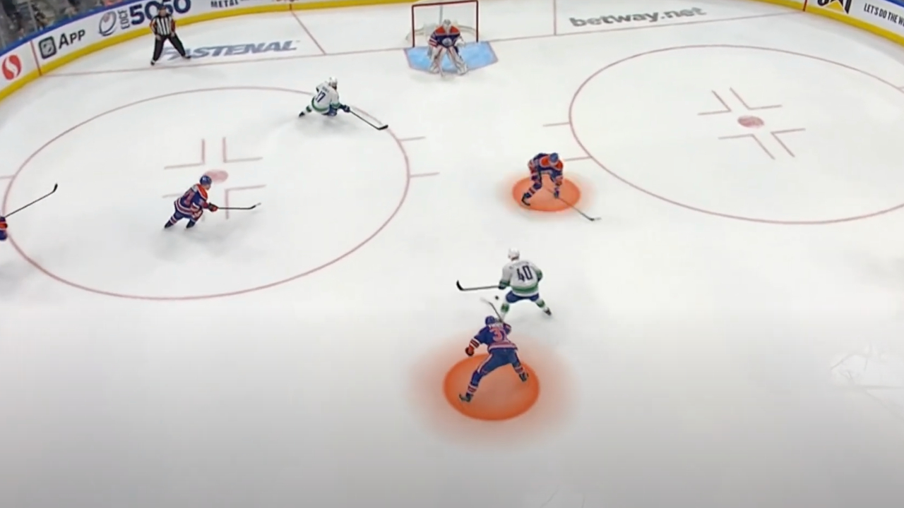 Effective hockey defence requires players to master several essential skills. They must protect the middle of the ice, direct opponents to less dangerous areas (through effective angling), keep their stick on the puck, engage physically with the body when they can't get the puck with their sticks, and execute these actions quickly. Throughout the series, the Oilers demonstrated these defensive fundamentals, often dictating the flow of the game by limiting the Canucks' scoring opportunities.