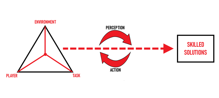 But we are not interested in just any problems. The greatest benefits will be realized when players are solving real game problems. This is the skillfulness we seek and the skillfulness that transfers. Therefore, using a CLA within representative learning designs that expose players to elements and problems from the game is where we find the greatest impact to skill development. Perception and action remain coupled in this combination and the objective becomes repeating the search for solutions rather than repeating a single solution.