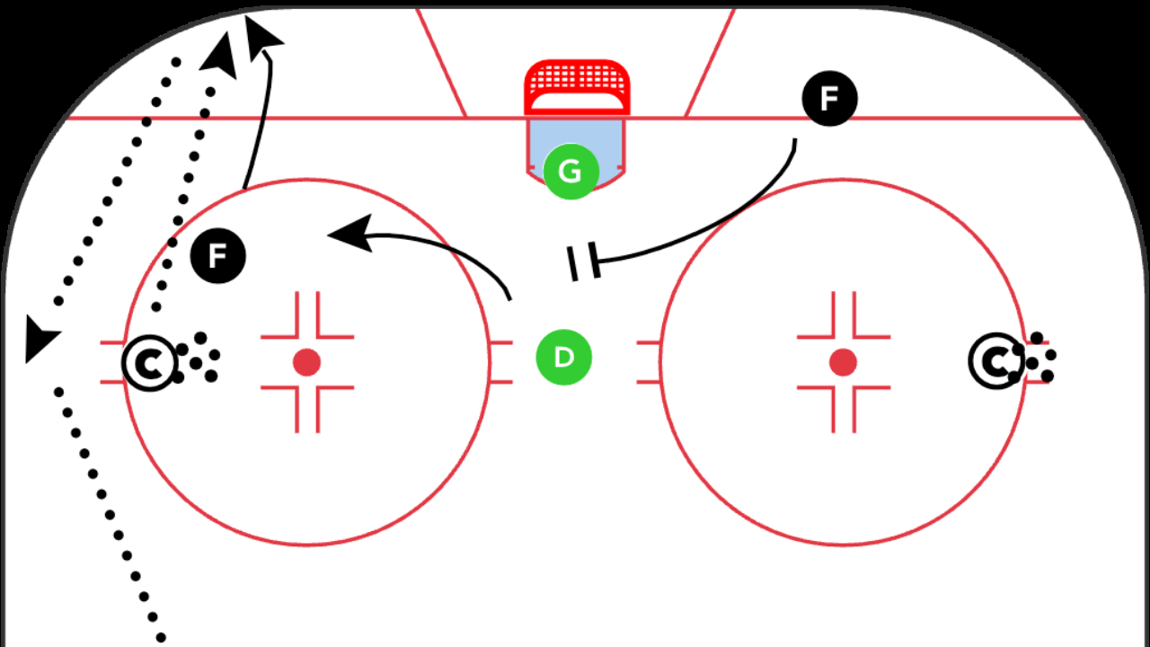 - Forwards stop and start - one forward needs to play net front while the other is retrieving