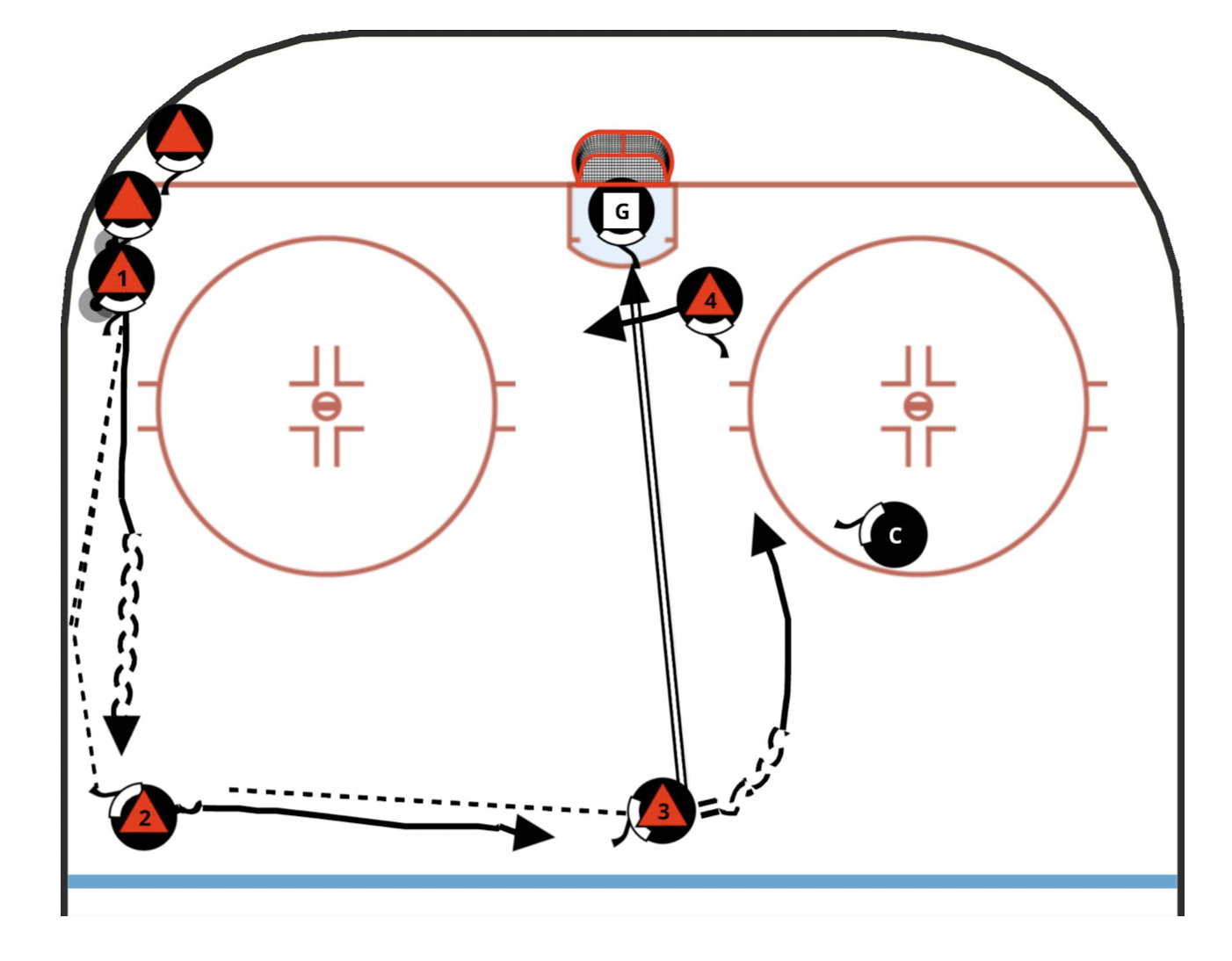 - After trapping puck, settle puck flat on ice before sliding pass to next D
