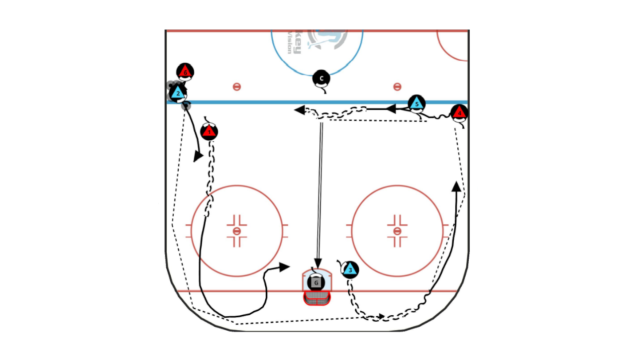 - D4 now passes to D5 who is sliding along the blue line to get open for a shot.