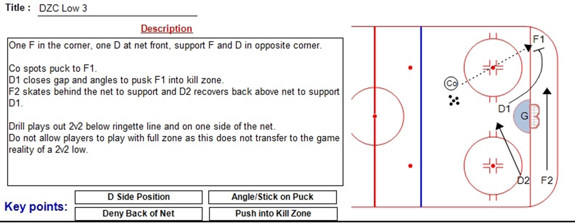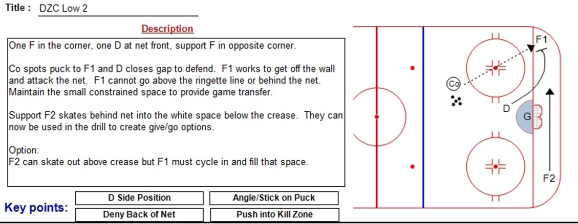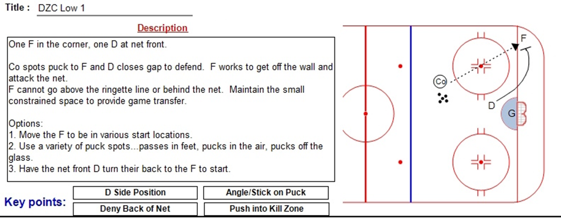 Here is a sample of activities coaches at any age and playing level can use to develop defensive zone coverage skills, tactics, habits and principles. These are all representative, based on real game elements. They provide players with problems to solve, enhancing their ability to perceive the environment and make effective decisions on taking action to solve those problems.