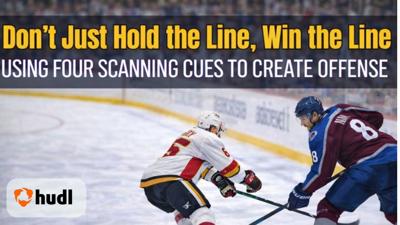 Scan; In this clip made with hudl, the puck moves low-to-high. Before arrival, the defenseman scans for three key cues: pressure angle (inside-out), speed (controlled), and support (middle and weak-side available). The scan allows the player to build a road map early.