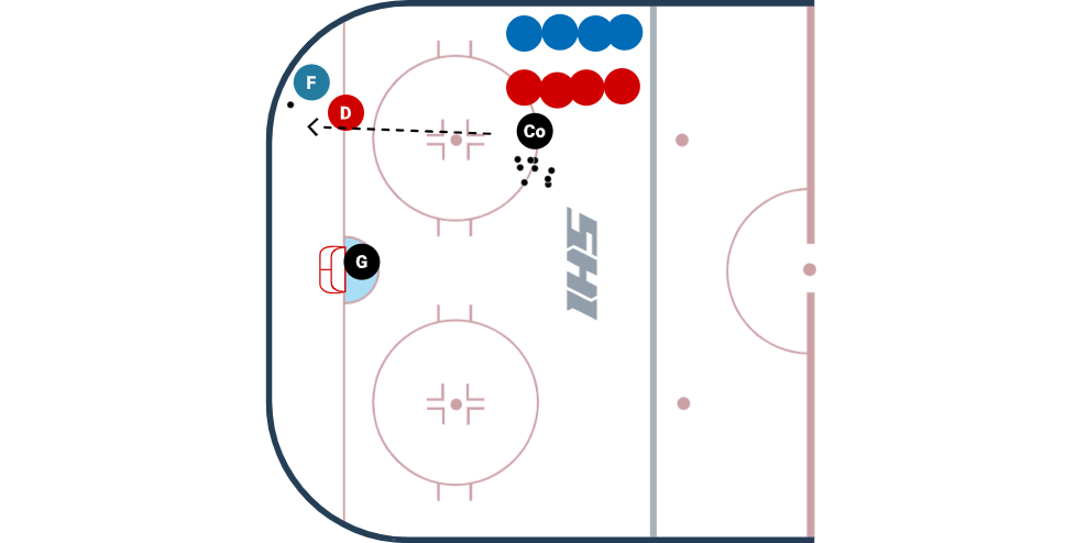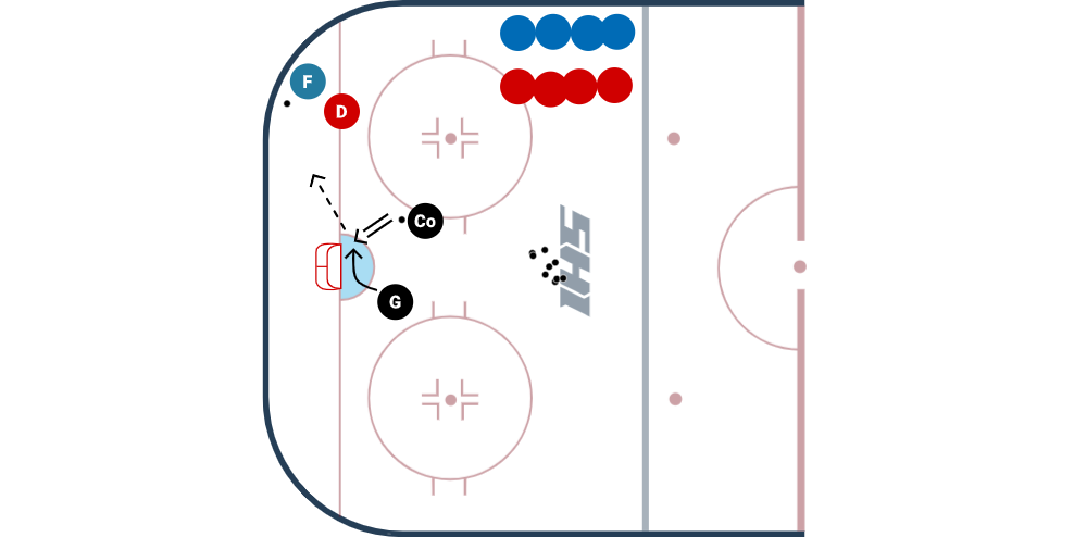 I am constantly analyzing the drills I run in practice, and trying to identify how I can get a little more out of it next time without losing any of the elements that it already has. With my background being in goaltending, I find that an easy way to modify a drill to get that "extra little bit" out of it is to get the goalies more involved, without necessarily putting more shots at them.