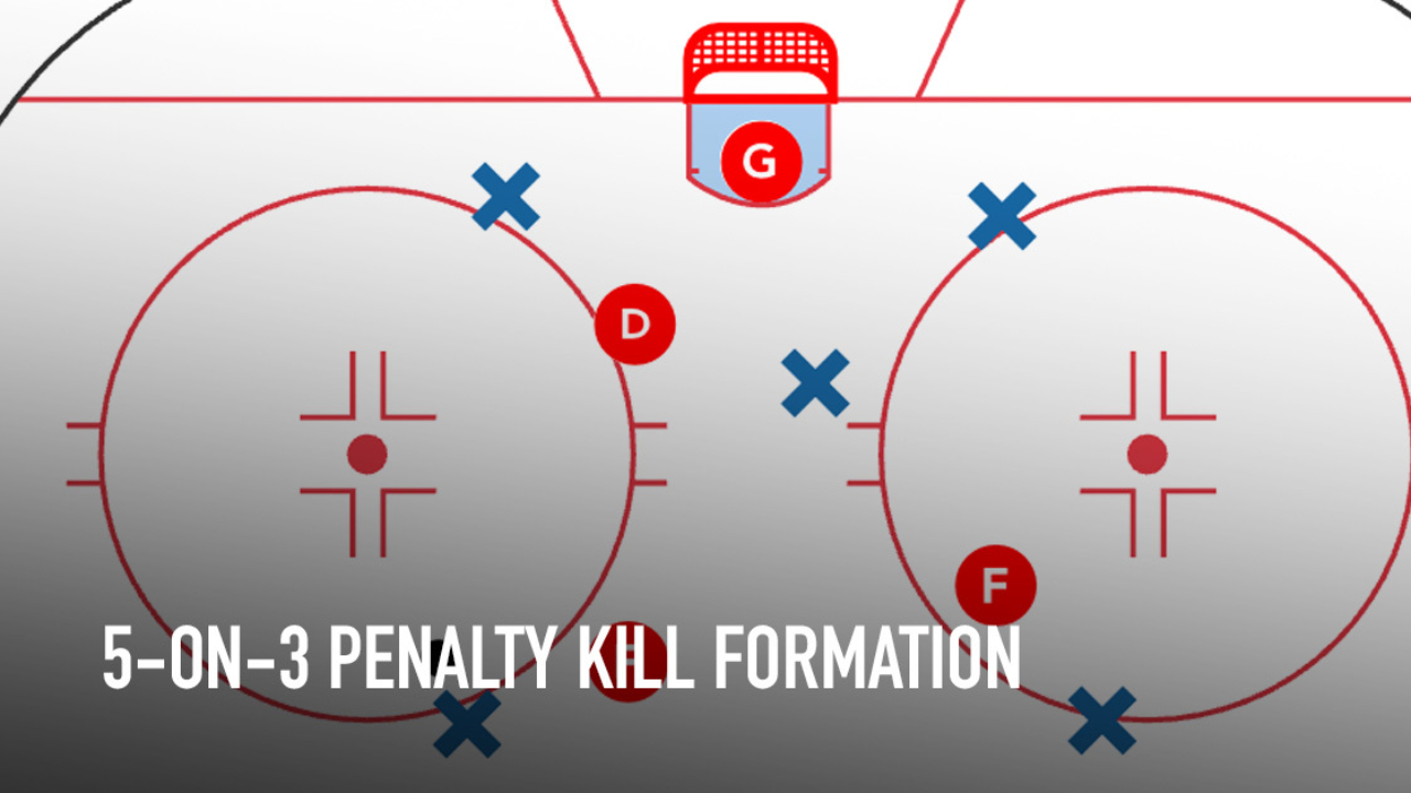 The best 5-on-3 penalty schemes are created by coaches who have distinct knowledge of an opponent’s 5-on-3 powerplay formation. Let’s say an incoming team has a player with a blistering one-time slapshot. 5-on-3 situations are rare, but if a coach doesn’t know about that player’s specific strength, the 5-on-3 penalty kill could be over quickly. Many coaches will use their timeout when they’re awarded a 5-on-3 powerplay, which gives the penalized team’s coach a chance to draw their preferred penalty kill formation out for the incoming players.