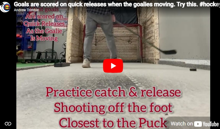 Goals are scored on quick releases when the goalies moving. Try this. #hockeydrills #hockey Practice catch and release off a rebounder and shooting off the foot closest to the puck. or Practice 1-timers across your body For more content= https://andrewtrimble.substack.com/ or www.aihockeyadvisor.com
