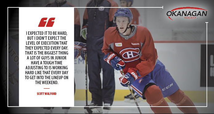 “The biggest adjustment for me was what was expected day in and day out,” Walford explains. “It’s easy to be good at 2-3 practices a week, but when you are practicing five times a week and working out five times a week, taking the bus in every day, going to school, going to the rink and taking care of everything after that, it really shows you how to be a pro.”