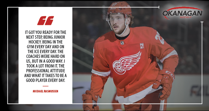 Rasmussen graduated from OHA to the Tri-City Americans, where he scored 157 points in 161 WHL games before beginning his ascent through the Red Wings’ organization.
