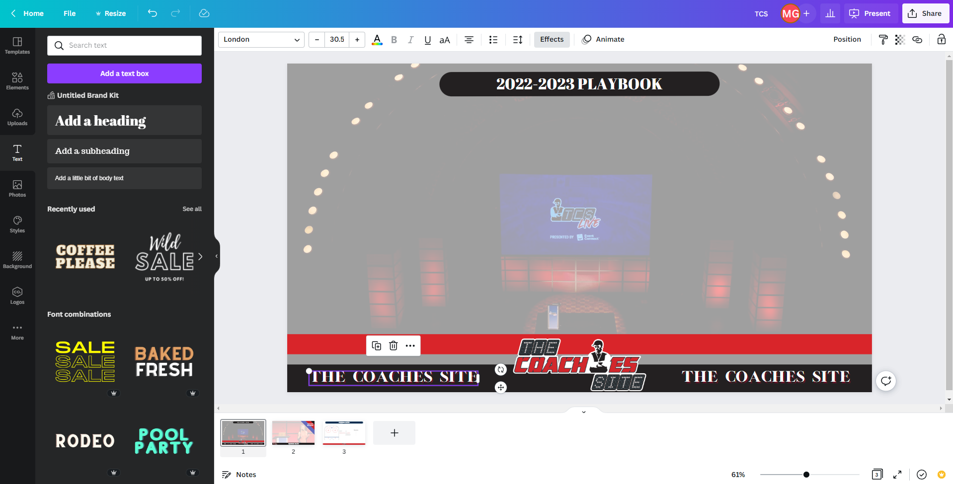 I know, I know, you might think you don’t have the artistic touch in you, but one thing I’ve noticed is that if your playbook is not appealing, you will not be able to catch the eyes of the players. Your front page should have a wow factor. PowerPoint allows you to add colours, pictures and different fonts. You can always use the Internet, and if your job has access to Canva, you will have more options. On my end and in my free time, I spend a lot of time tweaking with the art work, and I always try to come up with something new every year, but that’s just me.