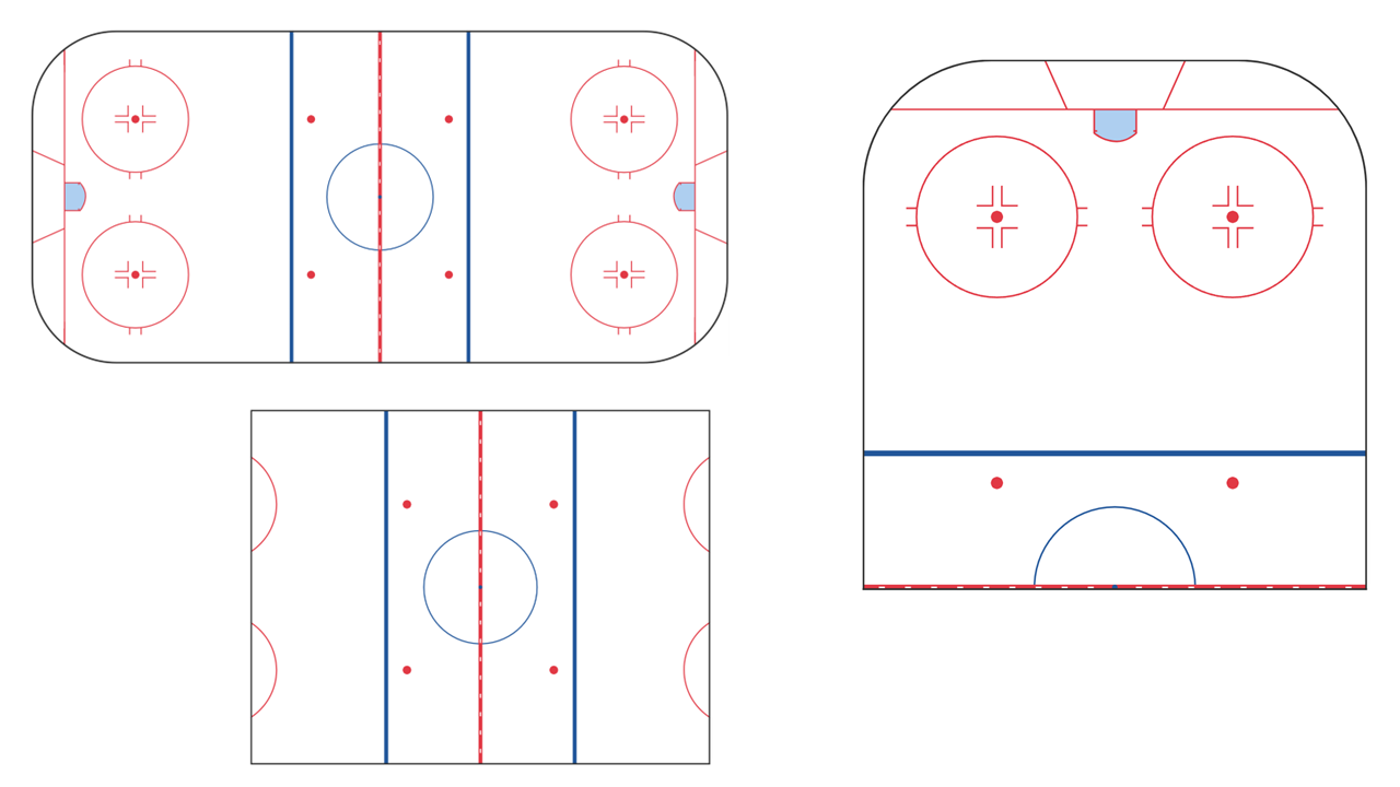 Now, if you are like me, you still use a lot of pen and paper for your drills and keep your old stuff in a binder. As I said, there are many different drill programs you can subscribe to and start using for your playbook. But if you don’t have one, don’t worry. I still use PowerPoint for this. The only issue is that you have to create a template of everything you need before you start. You only have to copy/paste your drawing, making your life easier. I will share the setup for PowerPoint with all the tools you might need at the end of the playbook series. Lastly, ensure you have three types of rinks with you and not always draw on an entire rink, especially if you want to show in-zone stuff, a diagram of half a rink makes it easier to visualize and see as a player.
