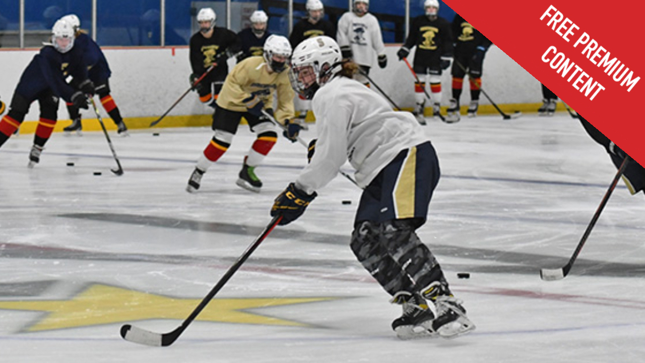 A better way to conduct a skating session is to have two groups of players in opposite corners. Demonstrate the drills keeping words to a minimum and using teaching cues, then get the players to do the drill from one corner to the net, or the opposite corner.