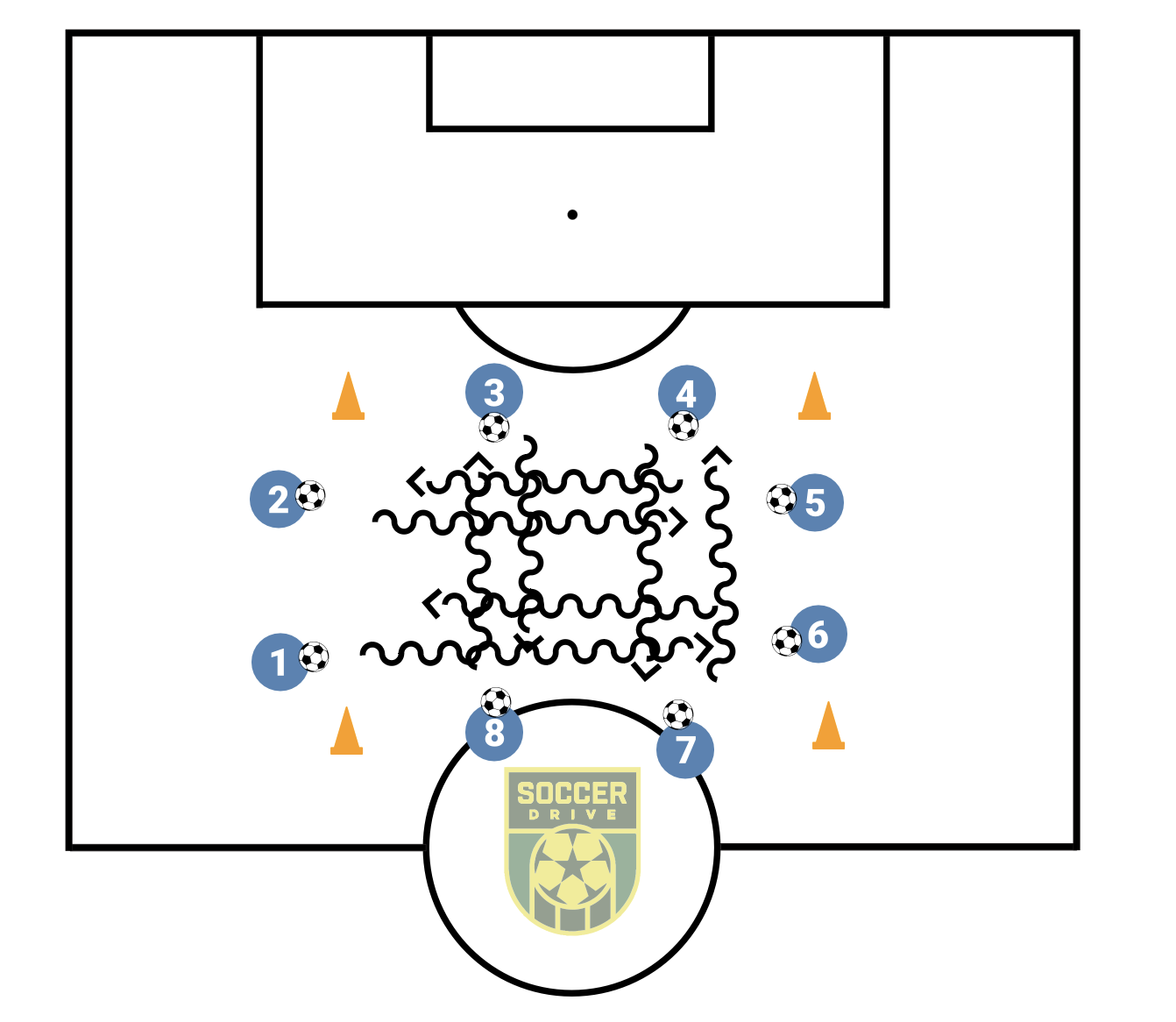 In the drill, players dribbled all at the same time though a box having to manouver their way around each other. They had to go back and fourth a given number of times, say 6 times, and count out loud as they did one rep (a rep is every time to go back tot he same position they started).