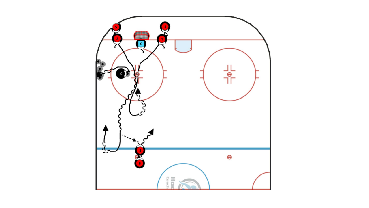 A very competitive drill for players of all ages that works on sprint starts, puck protection and quick counter 2v1 in a small space.