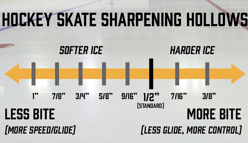 I often get asked, “what should I get my skates sharpened to?” And my answer is, figure it out - don’t be a follower! Skate hollows are almost as varied and personal as flex on a stick. You, or your skater, need to determine what is best for the skating and playing you do. You may need to try different ways, but once you figure it out, you will be all set!