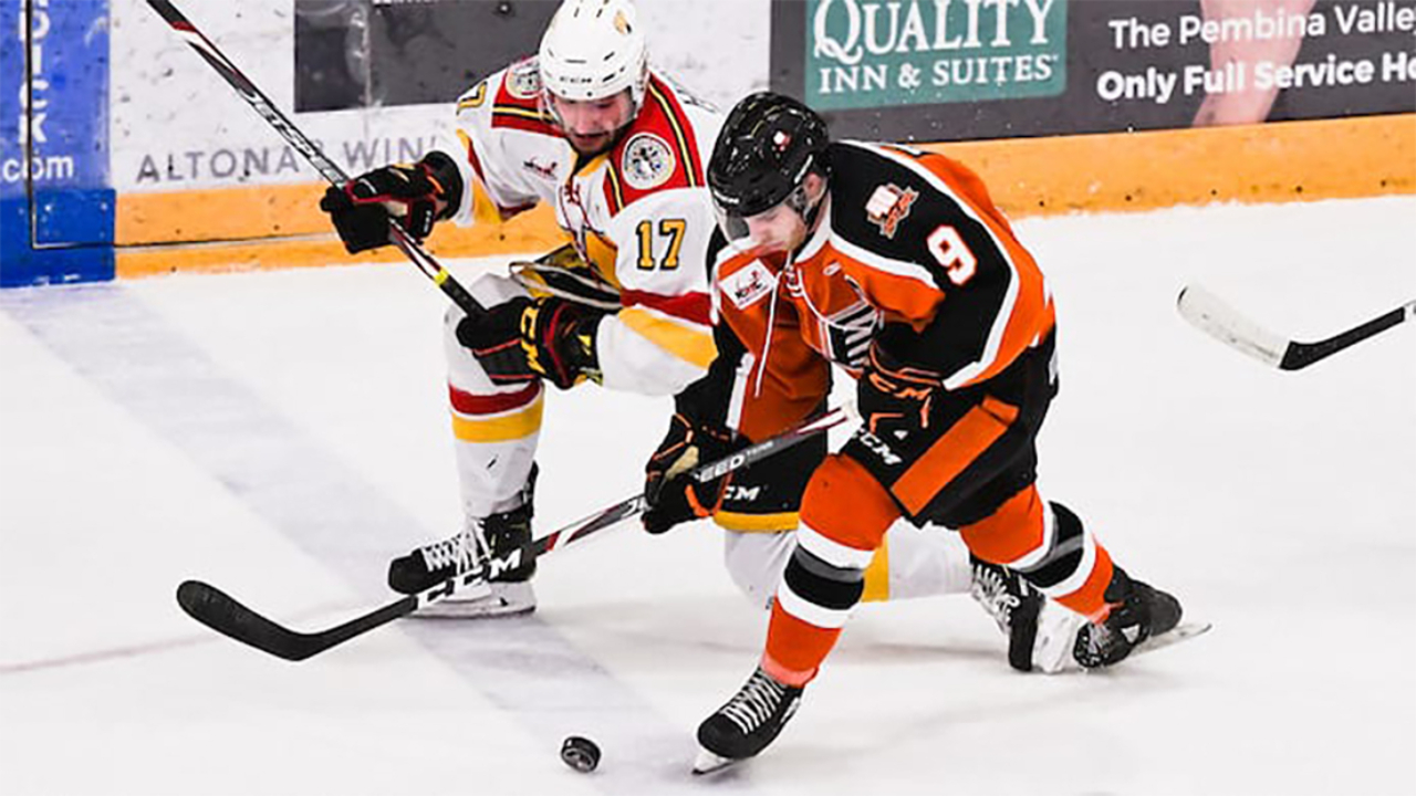 Let’s go north, let’s put the puck into good space and see what happens. Jackson Arpin soft chips past the defender, and 16-year-old Grady Lane attacks with speed and turns up. Everyone is on the same page because we work on delays in practice constantly. Grady finds Drake Burgin because a Selkirk player over-backchecks, and now we’ve got loose bodies because we’ve created confusion. And who scores? The other defenceman, Kyle Lamoureux.