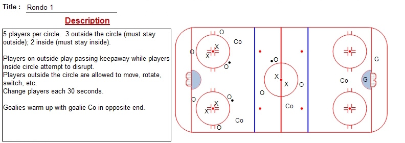 4.    Opening activities that are based on skating, puck control, passing can include goalies. If the opening activity is not suited to goaltenders then you have to plan for that time to be used by the goalie coach to prepare the goalies for practice.