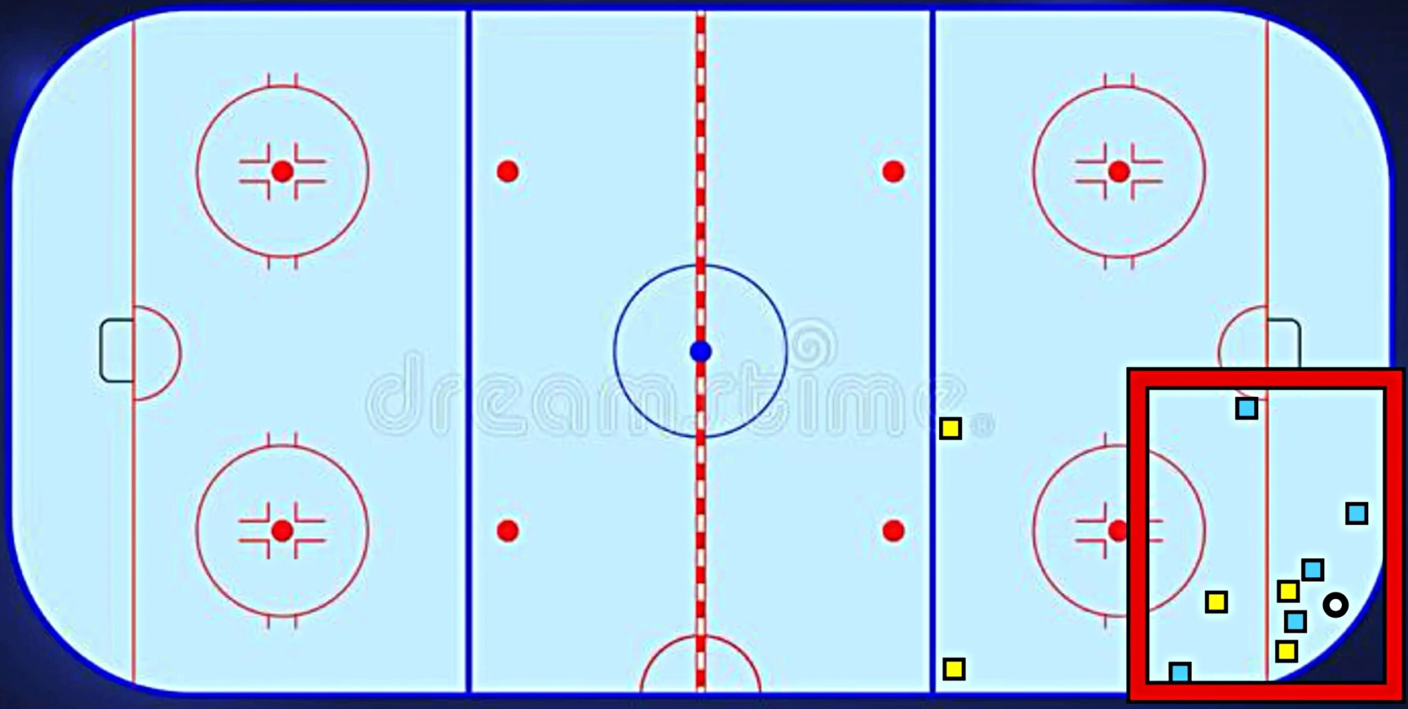 Defensive Team (Blue) Loads the Box (Five in the Box) on the Puck