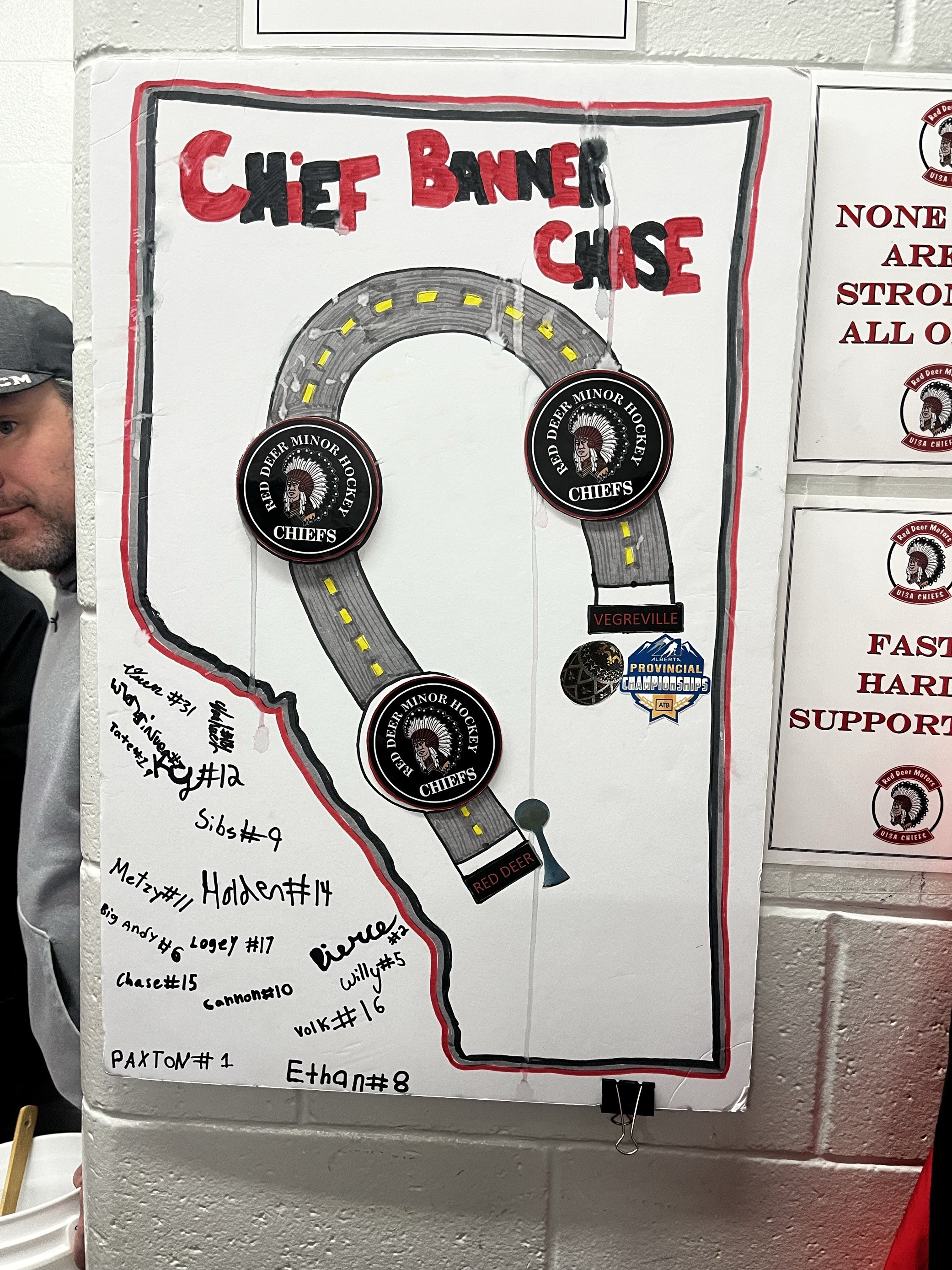 With all this in mind, I wanted my first post to be about some visual aids that I used this past season with the U13A squad that I was fortunate enough to lead in Red Deer. We had a great season, won our division, won our league & then came a goal short in a provincial semi-final. I am a big believer that as a coach & leader it's our job to motivate & inspire those that we lead. In the playoffs, when things always tighten up & the margins squeeze, any little bit of extra juice or motivation can make the difference. One way our staff leaned into this inspirational leaderhsip was through our "Chief Banner Chase" & our "Last Hunt" boards. Every bullseye marked a signifcant playoff accomplishment for us. In the playoffs it was with each series win, we used landmarks familiar to Red Deer & Vegreville- where the provincial tournament was held. The room was absolutely electric when we achieved these accomplishments as a group & we were able to put a logo on the board over a bullseye! I truly think this brought our team together & reinforced our shared goal. At the provincial tournament we had a similar board, with 3 bullseye's. After we clinched a semi-final berth we asked our 2 stick boys that had been assigned to help us out, to have the honors of putting a logo on the board- it was an unforgettable moment for our group. In the end we fell a goal short & 2 logo's never made the board- that is sports- but it's truly amazing how little visuals like this can take on a life of their own & how much juice and energy they can provide over a long & tough playoff run!