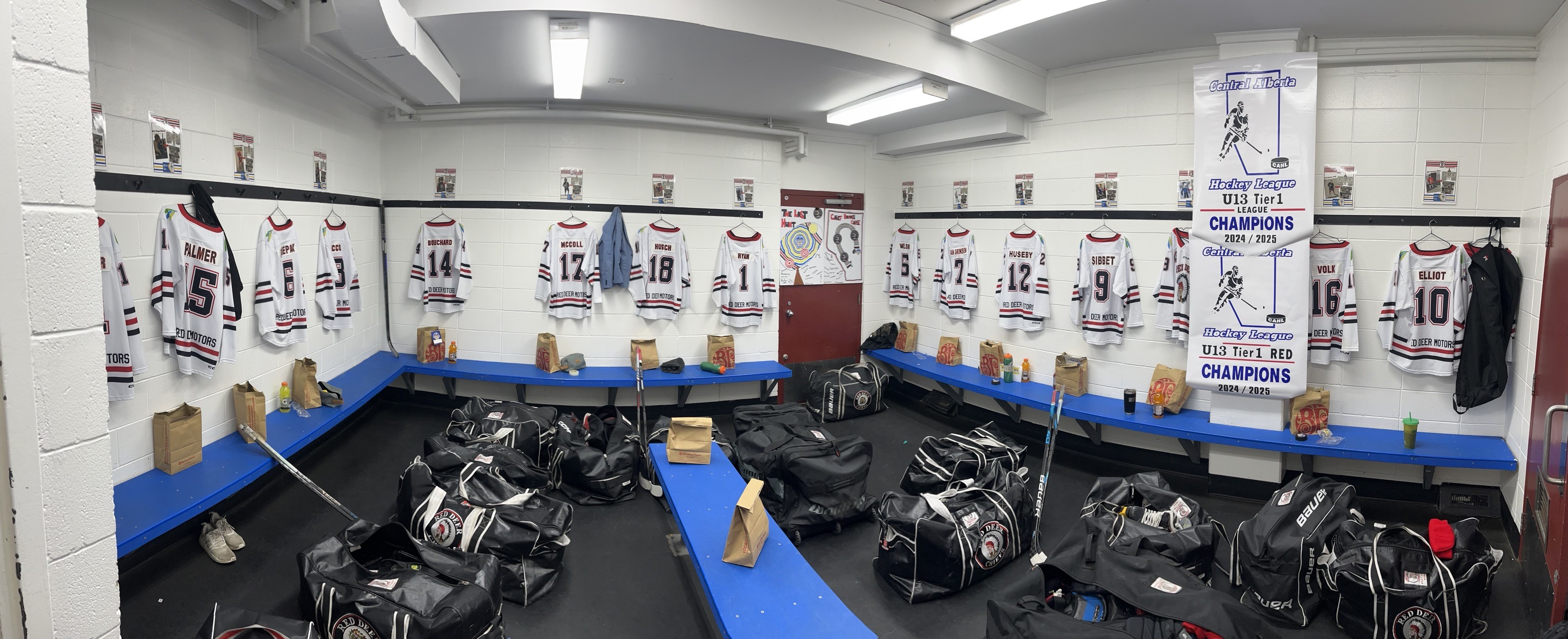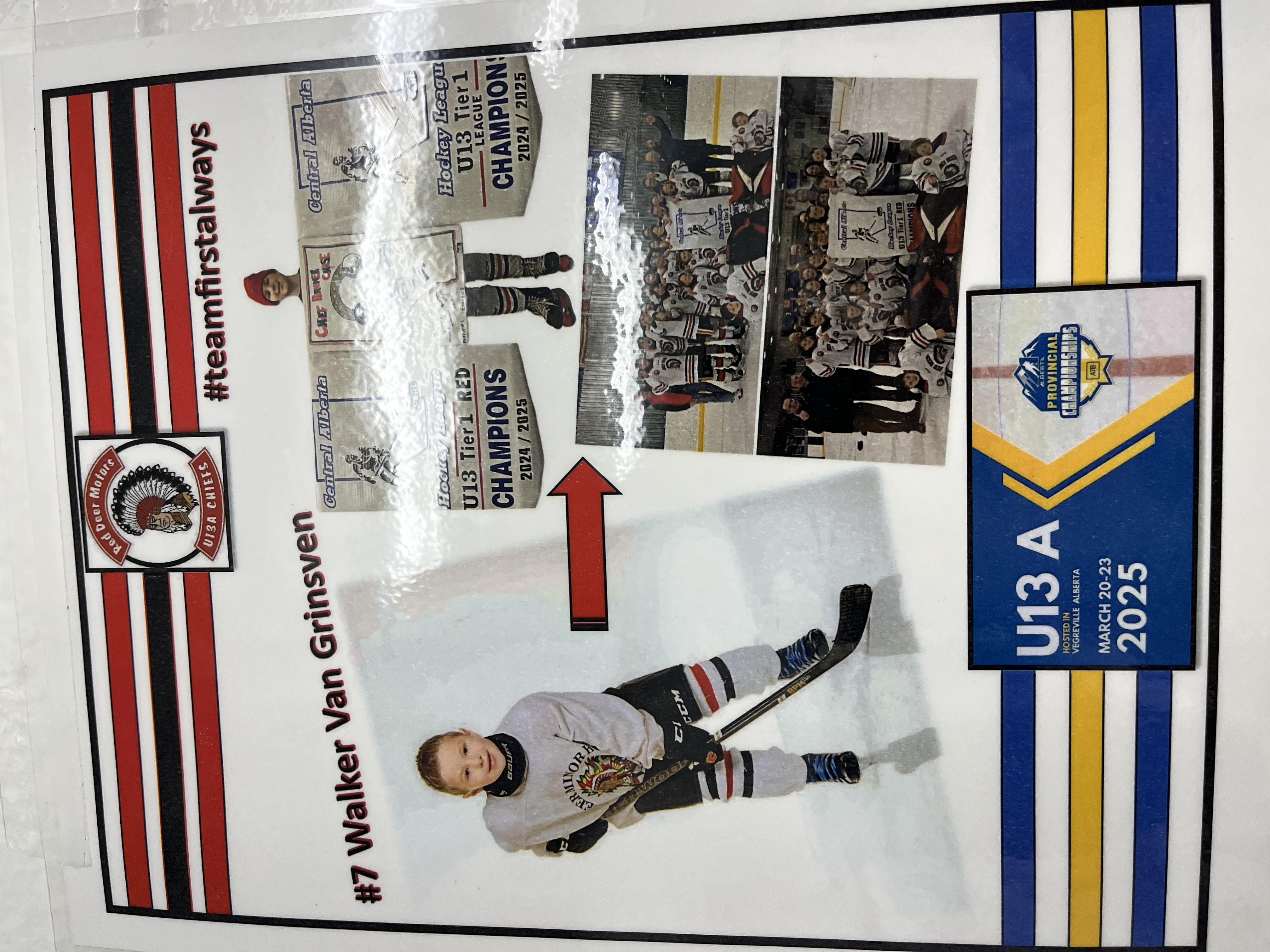 As we headed into the provincial tournament, after winning the league championship the coaching staff talked about re-focusing the group & how we could provide a little bit of extra motivation to hopefully get us over the top, while also highlighting how amazing it is to compete for a provincial championship. We landed on creating a custom designed print for every player that would hang above their stall in Vegreville to highlight how far each player has come. We asked the parent group to provide theirt favorite picture of their player when they first started out. At our meeting before the provincial torunament we talked about how pumped their 5 & 6 year old self would be if they knew that in 5 or 6 years time all their hard work & effort had resulted in them being called league champions & then getting a chance to represent their hometown at a provincial championship! We then handed out the custom prints & you could feel the pride and self satifsfaction in the room. Seeing these hanging above their stall before our first Provincial Tournament game was pretty amazing & hopefully a great keepsake for them to remember the experience!