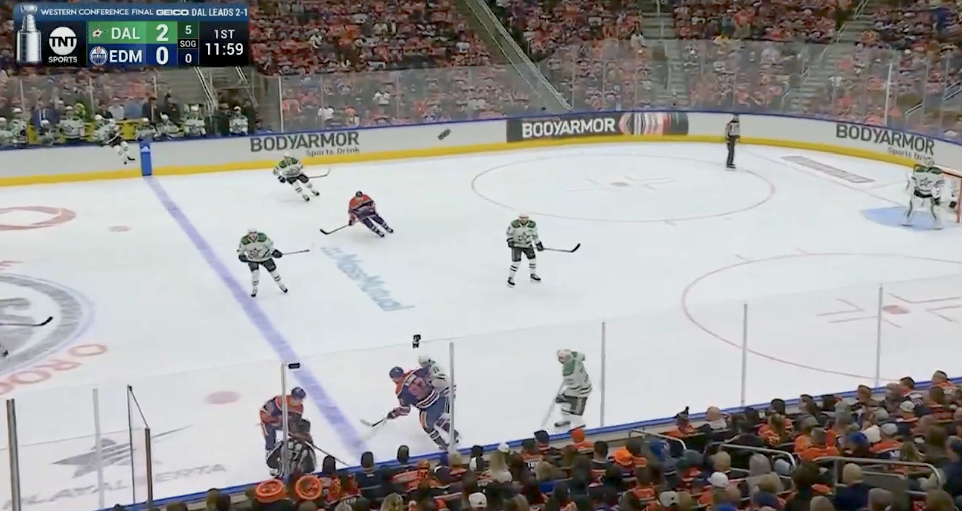 Or do they? Here's a brief moment in time during Game 4 of their Western Conference Final Series with the Dallas Stars. Dallas leads the series 2-1. They're up 2-0 in the 1st period. It's eight minutes in and the Oilers don't have a shot on net.