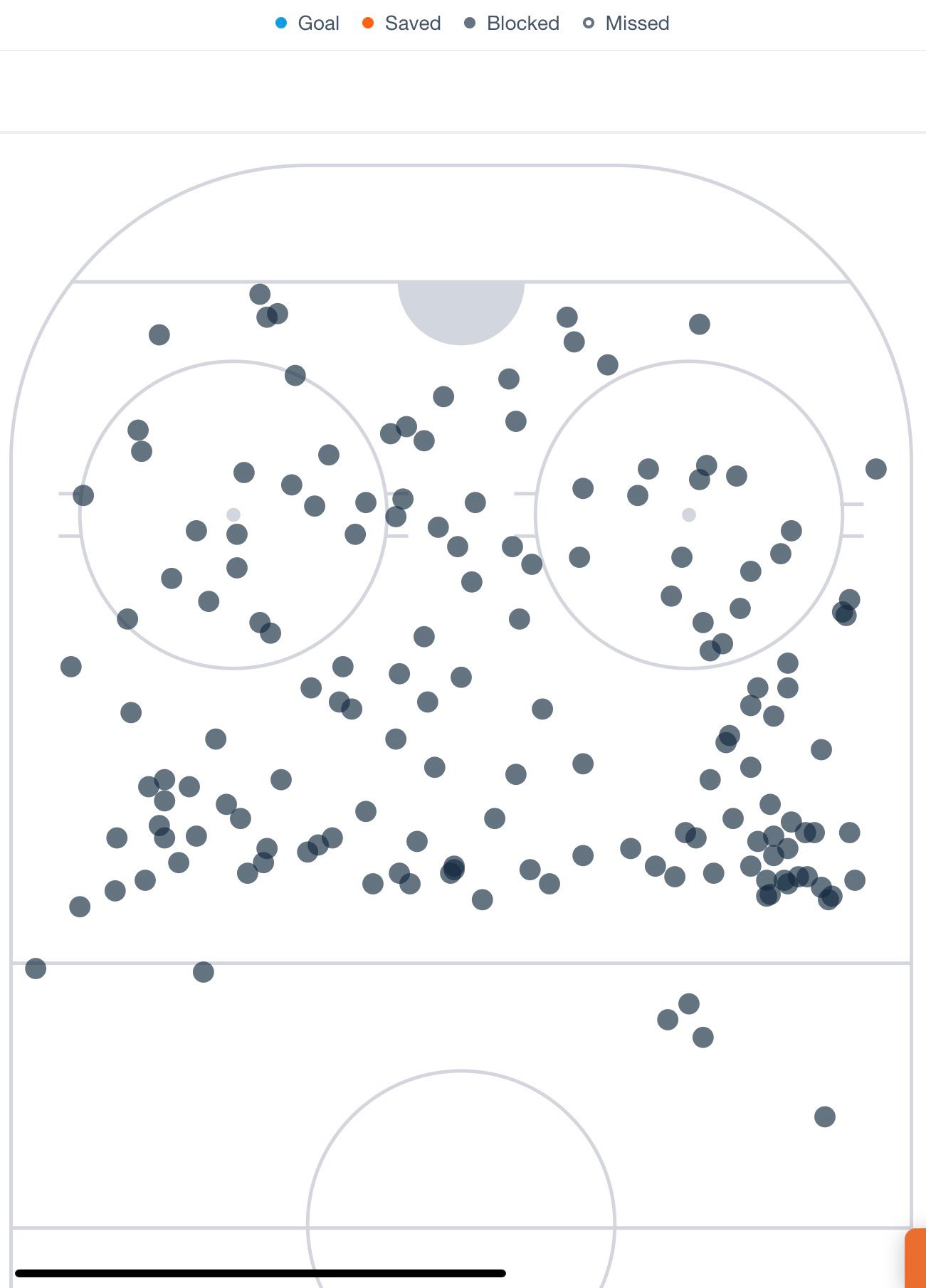 Shots that were blocked – Large clusters are at the points. Point shots are blocked at a higher rate than elsewhere.