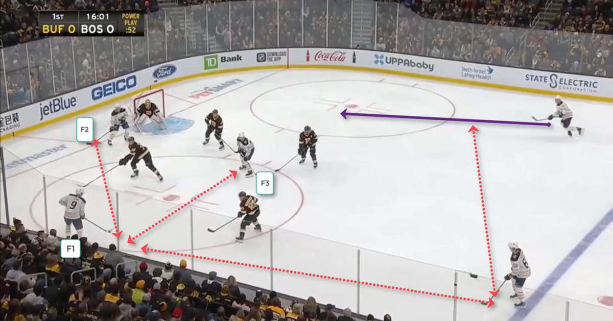 6. Supports players moving their feet into open ice to set a quality passing lane which opens up ice and opportunities for members of the Offensive Group.