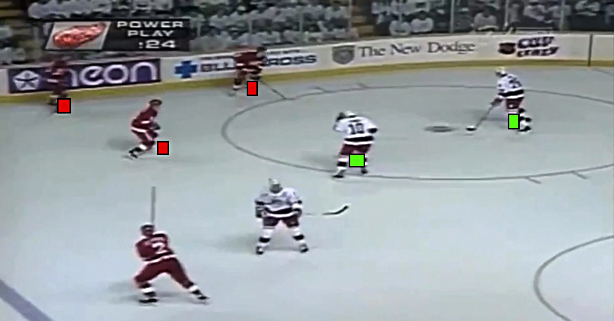 The video below is of the Red Wings Power Play unit made up of five well known Russian players who possess strong technical hockey skills. The players demonstrate patience with the puck and the ability to find open ice, support the Puck Carrier and to create an outnumbered situation to advance the puck. The video clip is worth watching to see these concepts being executed.