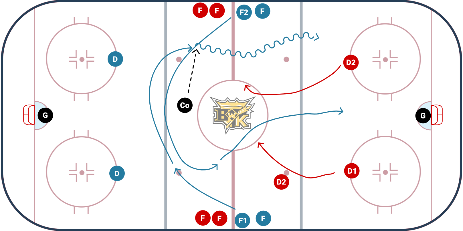 - The coach will kick out the puck to either side, and the D has to react to which side the puck is going