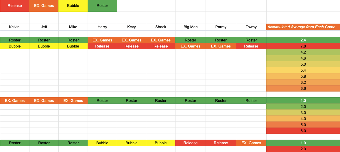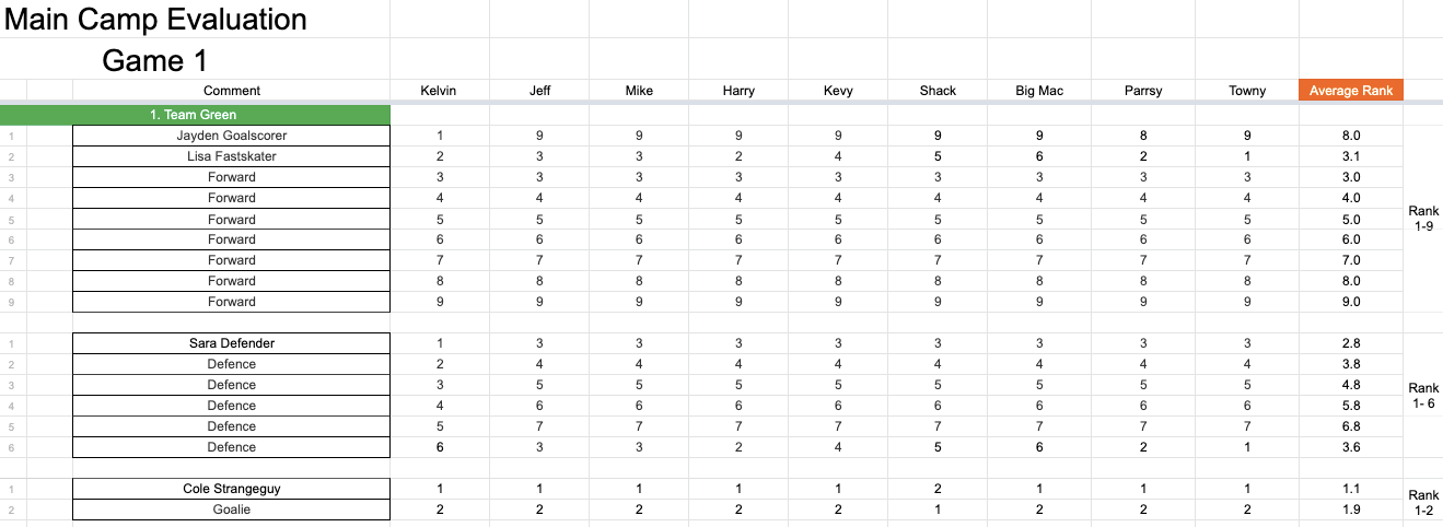 Here’s a detailed ranking template you can download that will help you get everyone organized, even if they don’t agree with each other: Training Camp Ranking System