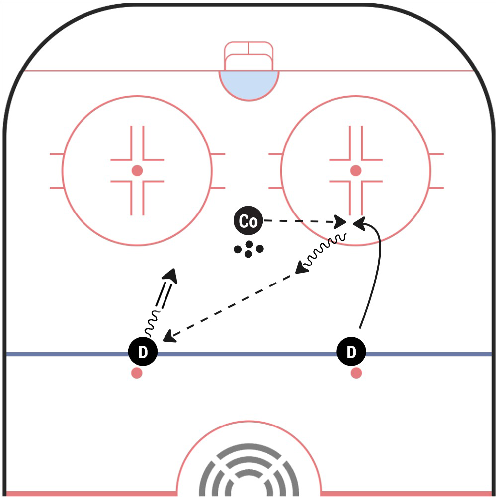 Supporting his presentation on Optimizing Pass Receptions, Alexandre Chénier shares this drill that helps defencemen work on passing and receiving in transition.