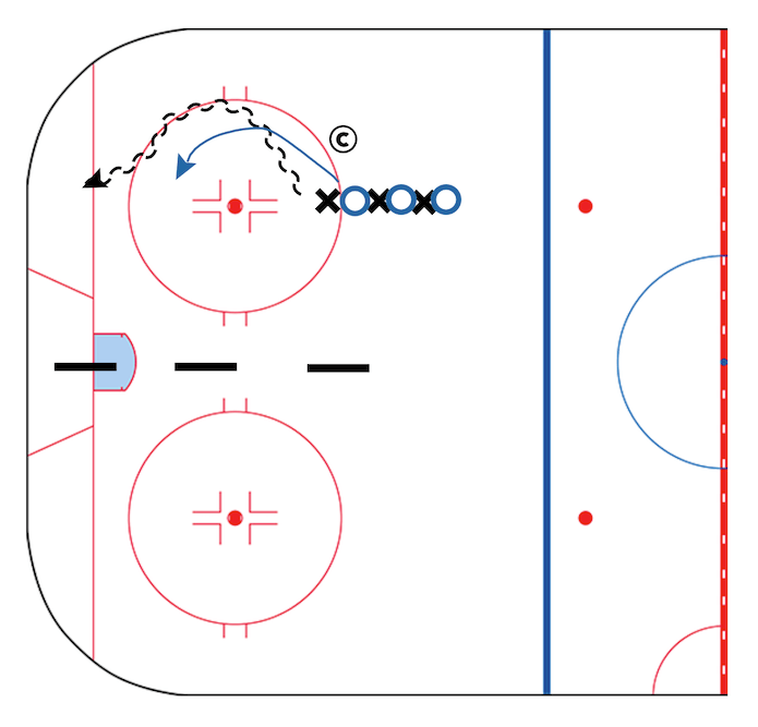 When the coach says "Go" the first player skates away backward from the second player.