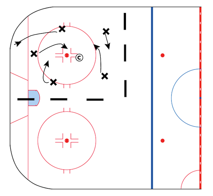 The Coach sections the ice with cones, barriers or by drawing on the ice.