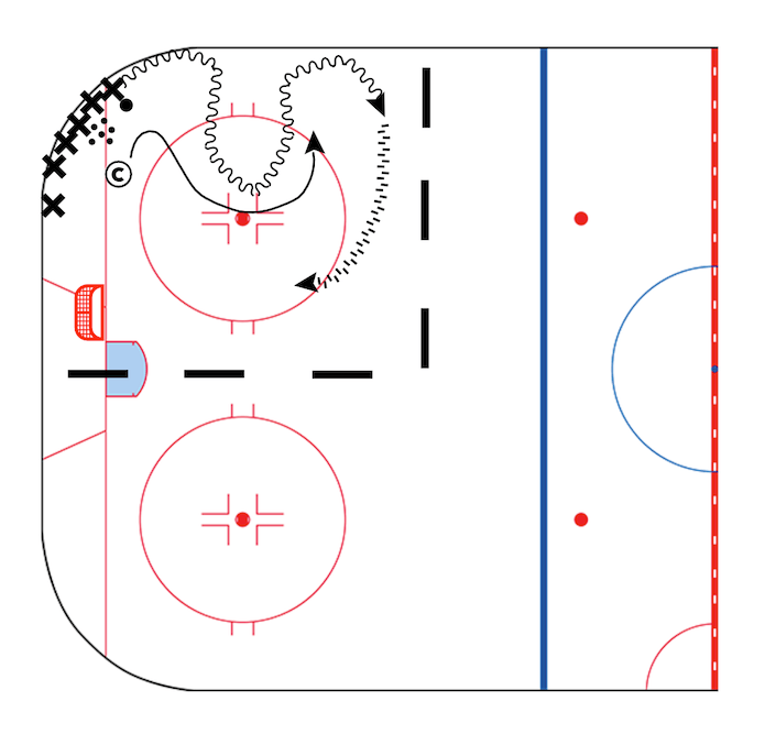 Emphasis on getting to the middle of the ice quickly using crossovers.
