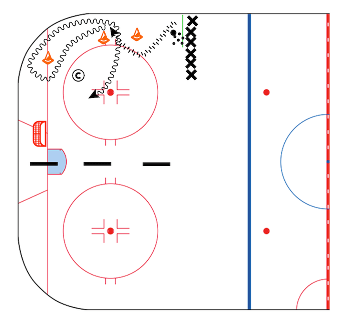 When they reach the corner the player moves off the boards and performs a delay before accelerating to the net.