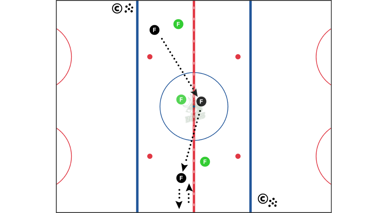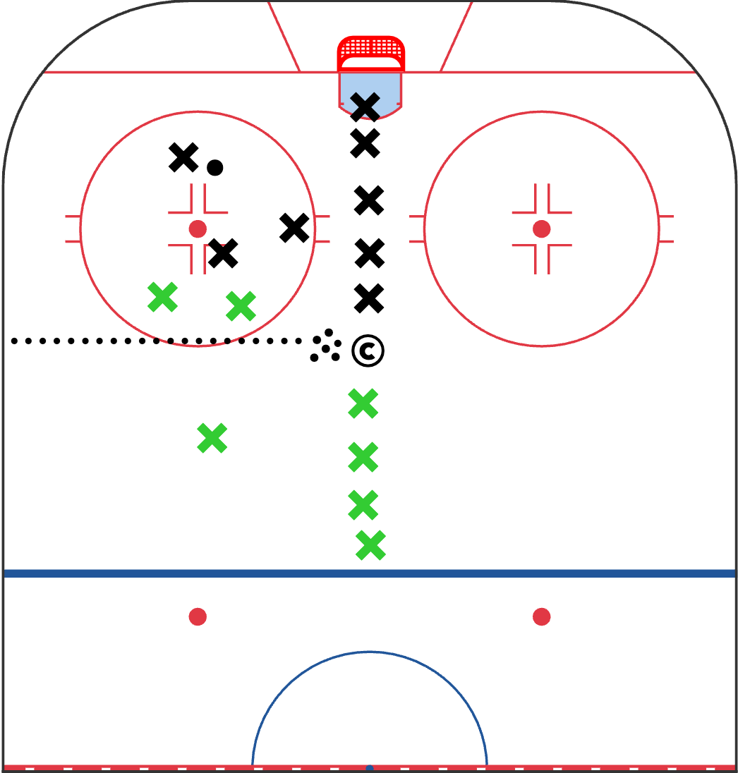 Bonus! Throw a goalie in the net when they show up, the players will love ripping one-timers from the strong-side dot.