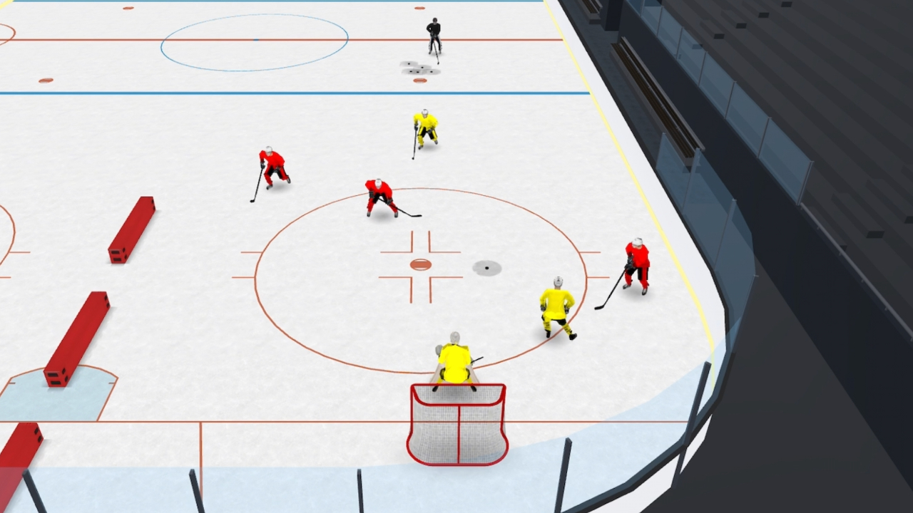 All four players enter the zone for a breakout, working together to gain the blue line. Once outside, the play turns back and the three designated forwards attack the net while the first player who played the puck plays defense inside the zone, the defenseman up high then provides the backcheck, giving pressure to the forwards, making it feel much more game-like.